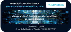 MATINALE SOLUTIONS DINAN – VENDREDI 14 FEVRIER De 9h à 12h ——– Comment réussir la transformation numérique de mon