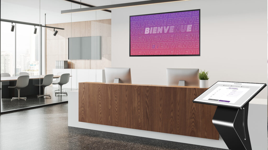 Optimisez l’expérience client grâce à des solutions tactiles et du matériel adapté : scénarios tactiles personnalisés, extension registre visiteur sur mesure… Le tout sur des supports parfaitement intégrés dans vos environnements : bornes d’accueil interactives, totems digitaux, pupitres tactiles… Un parcours client digitalisé pour plus d’efficacité.