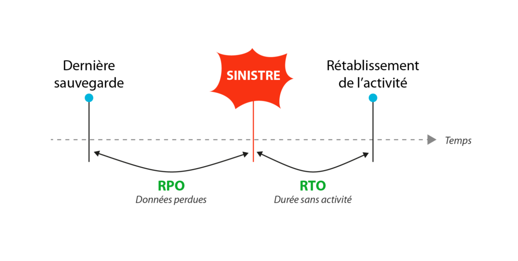 Si l’entreprise met en place un plan de continuité d’activité (PCA), il n’y aura pas de coupure (RTO = 0), cependant, le système d’information peut fonctionner en mode dégradé. Pour un plan de reprise d’activité (PRA), il y a une coupure du service qui sera plus ou moins longue en fonction de votre RTO, et la reprise peut également se faire en mode dégradé.