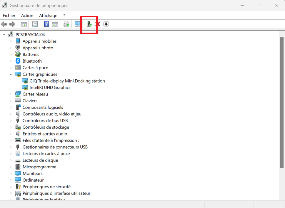 Sélectionnez ensuite le périphérique dont vous souhaitez mettre à jour les pilotes puis cliquez sur le bouton de mise-à-jour comme indiqué sur la capture d’écran ci-dessous :