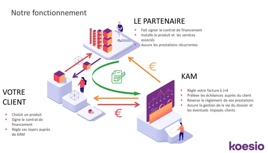 Le financement apporte 2 leviers majeurs dans la croissance de votre entreprise : la sécurisation de votre trésorerie, et la capacité financière d’investir pour vos clients. Fort de notre expertise en location financière, nous vous aidons à pivoter votre business model en intégrant le financement dans vos offres.