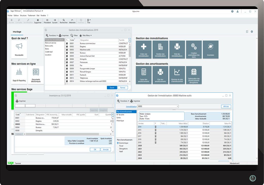 Augmentez la productivité :Votre logiciel s’interface et communique en temps réel avec Sage 100cloud Comptabilité, évitant ainsi la ressaisie des données. Vous pouvez suivre les acquisitions et cessions, établir des budgets de prévisions de charges.