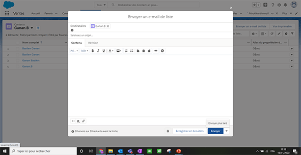 Il est possible de créer des emails de liste avec un nouveau concepteur d’email drag and drop. Vous pouvez aussi programmer l’envoi d’e-mail de liste à date et heure précise.