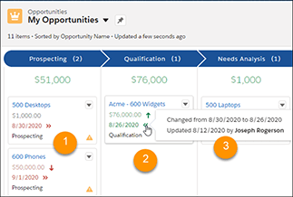 • Mise en évidence des opportunités modifiées en vue Kanban
