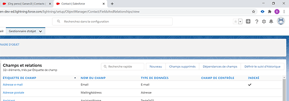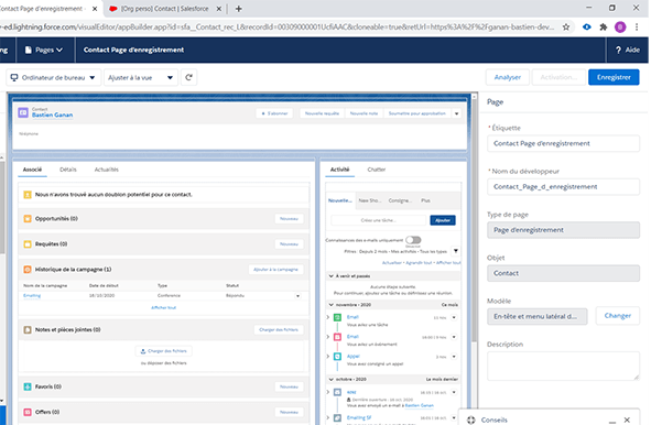 • configuration des champs et création des sous-sections dans le détail d’un enregistrement, en les plaçant où on le souhaite sur la page lightning
