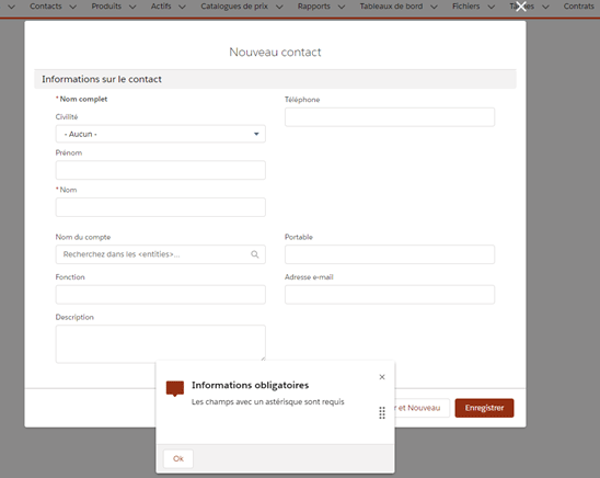 Vous pouvez maintenant paramétrer des fenêtres d’aide personnalisées sur les écrans de création/modification/clone d’un enregistrement.