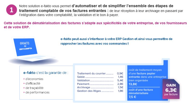 Nous vous proposons une solution globale, de la dématérialisation des factures aux moyens de paiement.